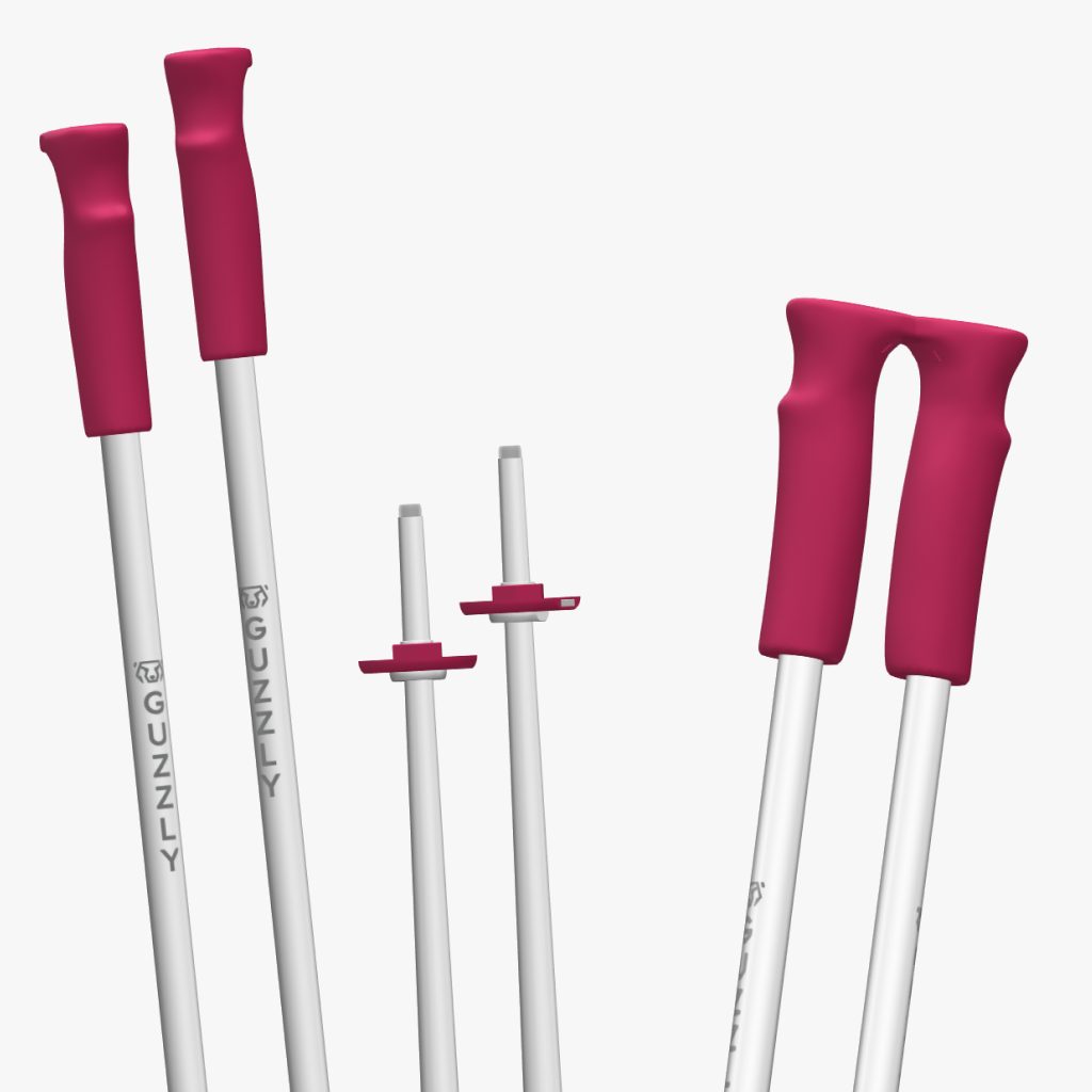Egal, ob du funktionale Features oder stilvolle Akzente suchst: Die GUZZLY Poles sind perfekt, um Dein Skierlebnis auf ein neues Level zu heben. Unsere GUZZLY Poles vereinen ein minimalistisches Design mit durchdachter Funktionalität. Das modulare System ermöglicht es Dir, die Griffe sowie Teller ganz einfach auszutauschen, um mit individuellen Farbkombinationen Deinen persönlichen Stil auf die Piste zu bringen. Das integrierte magnetische Halterungssystem erleichtert Dir außerdem den Transport und sorgt für freie Hände im Skilift. Zudem werden die Stöcke aus robustem 7-Series Aluminium gefertigt und präzise auf Deine Körpergröße zugeschnitten.