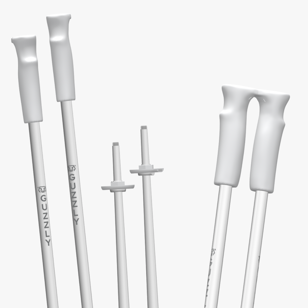 Egal, ob du funktionale Features oder stilvolle Akzente suchst: Die GUZZLY Poles sind perfekt, um Dein Skierlebnis auf ein neues Level zu heben. Unsere GUZZLY Poles vereinen ein minimalistisches Design mit durchdachter Funktionalität. Das modulare System ermöglicht es Dir, die Griffe sowie Teller ganz einfach auszutauschen, um mit individuellen Farbkombinationen Deinen persönlichen Stil auf die Piste zu bringen. Das integrierte magnetische Halterungssystem erleichtert Dir außerdem den Transport und sorgt für freie Hände im Skilift. Zudem werden die Stöcke aus robustem 7-Series Aluminium gefertigt und präzise auf Deine Körpergröße zugeschnitten.